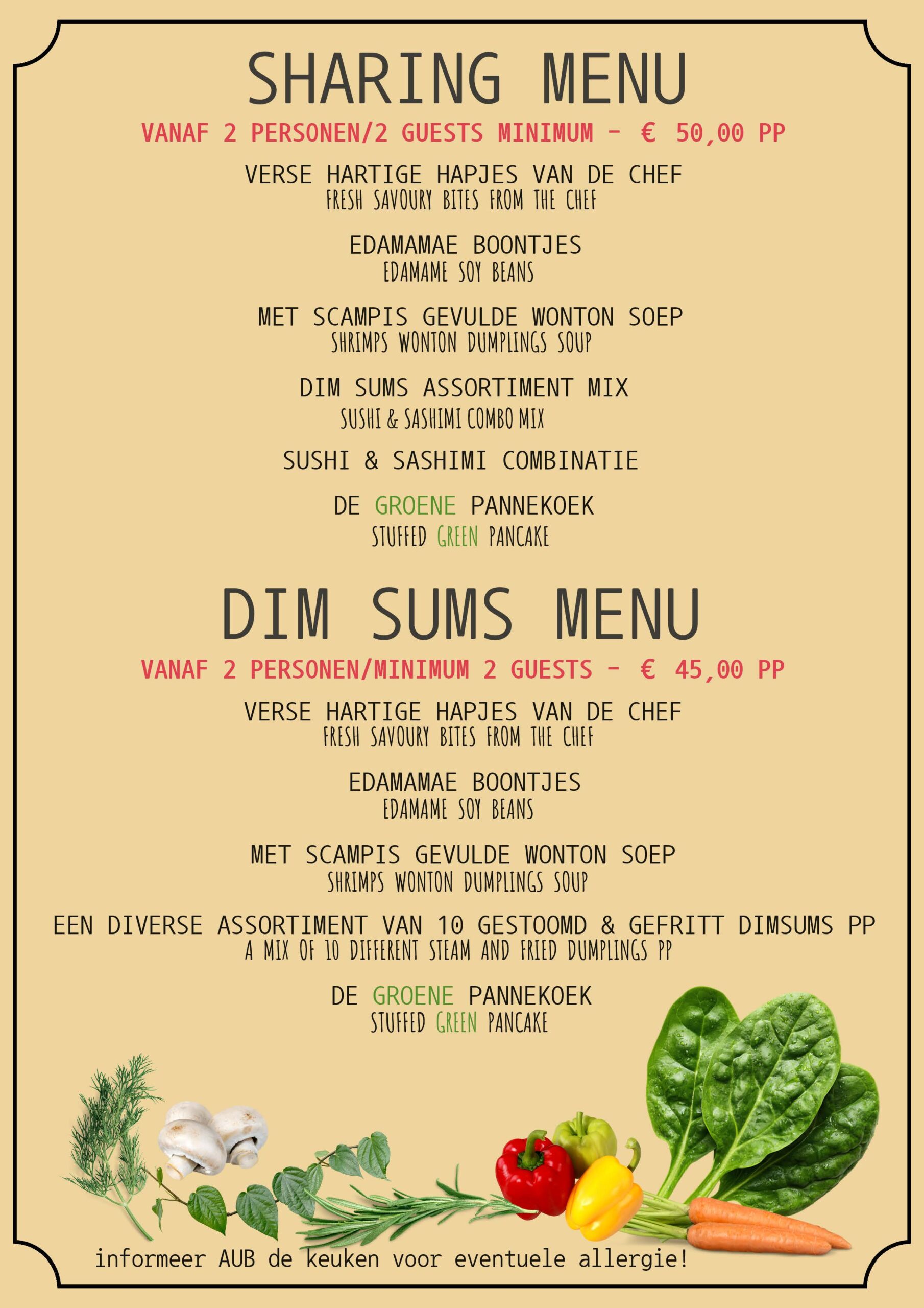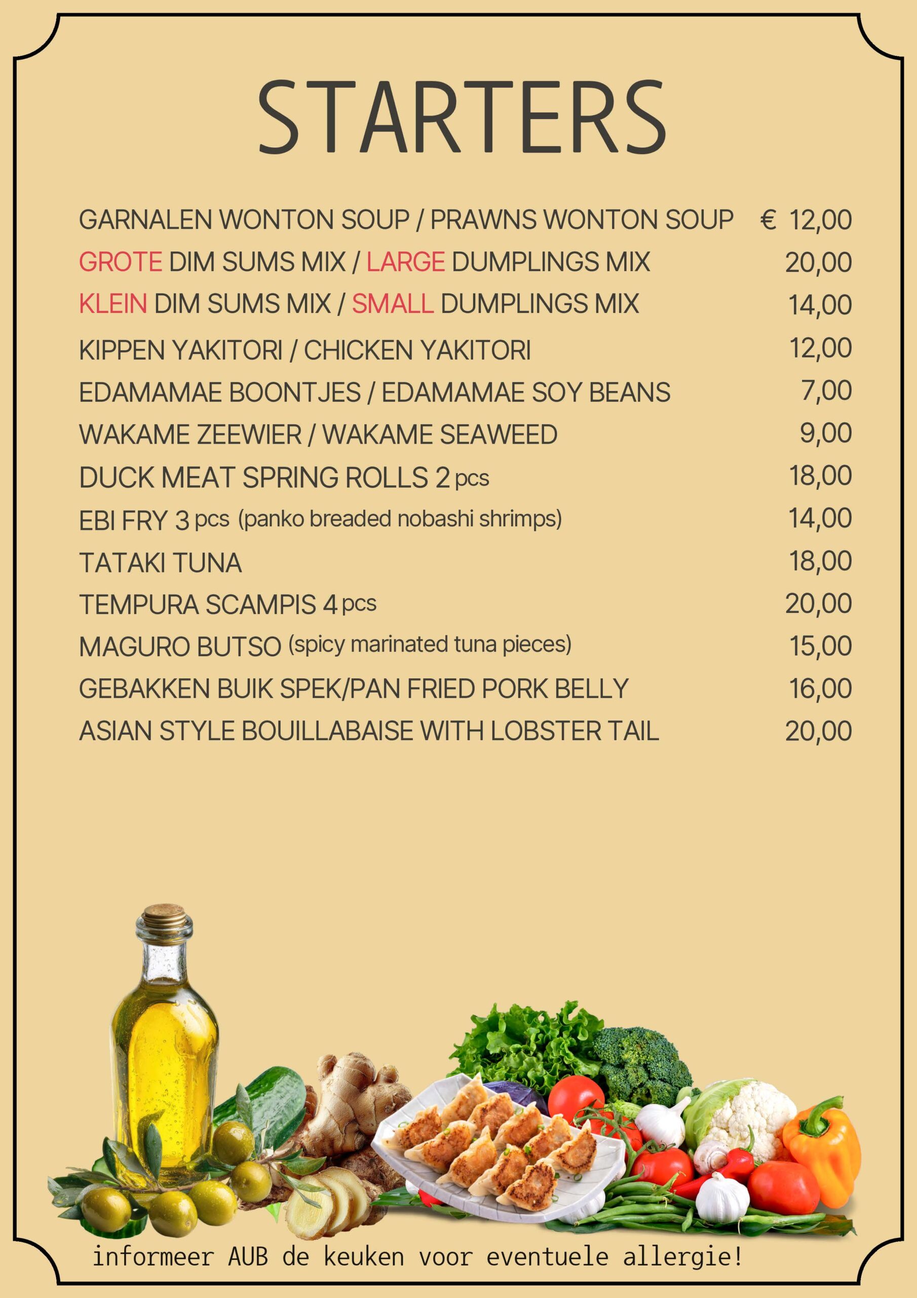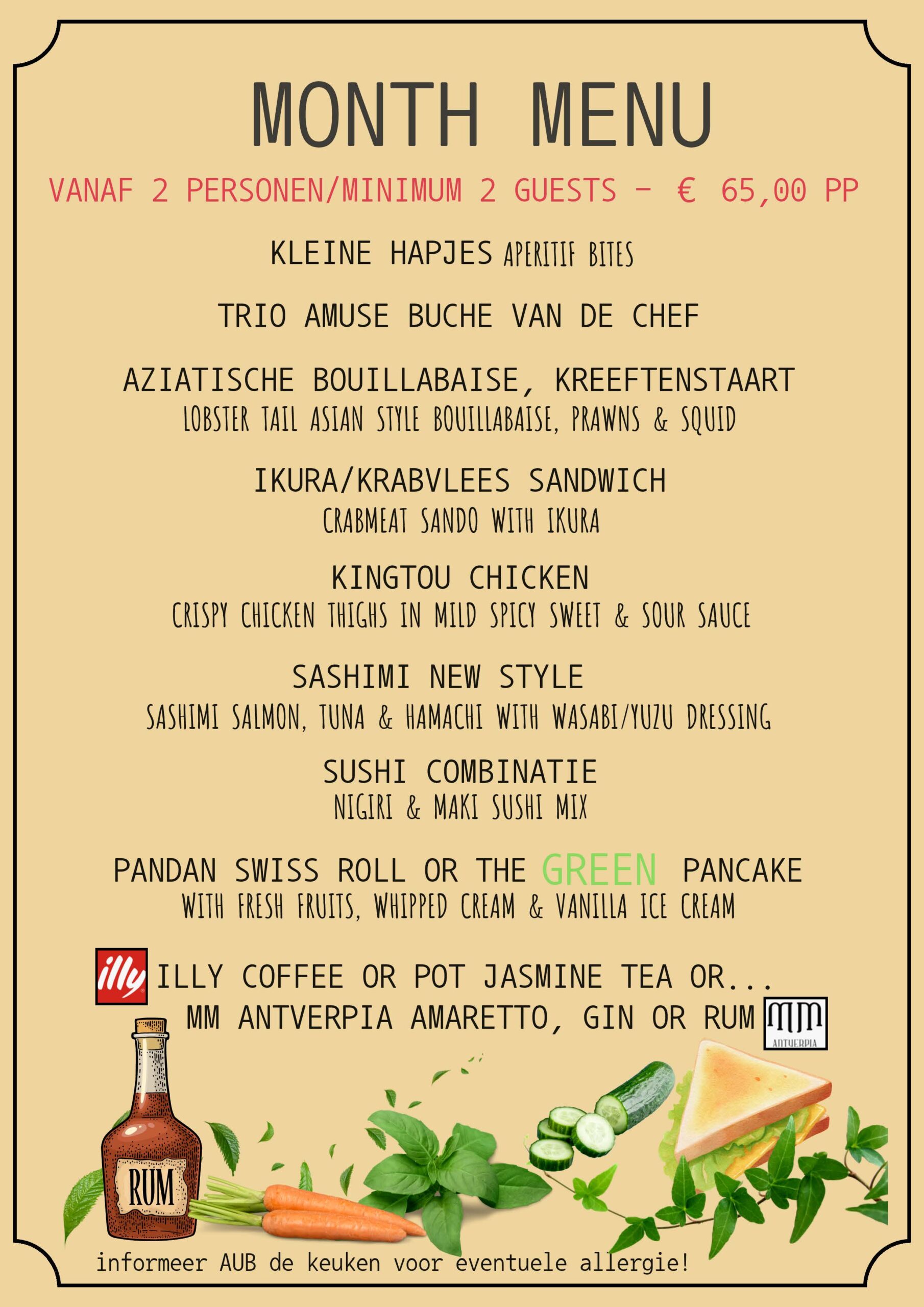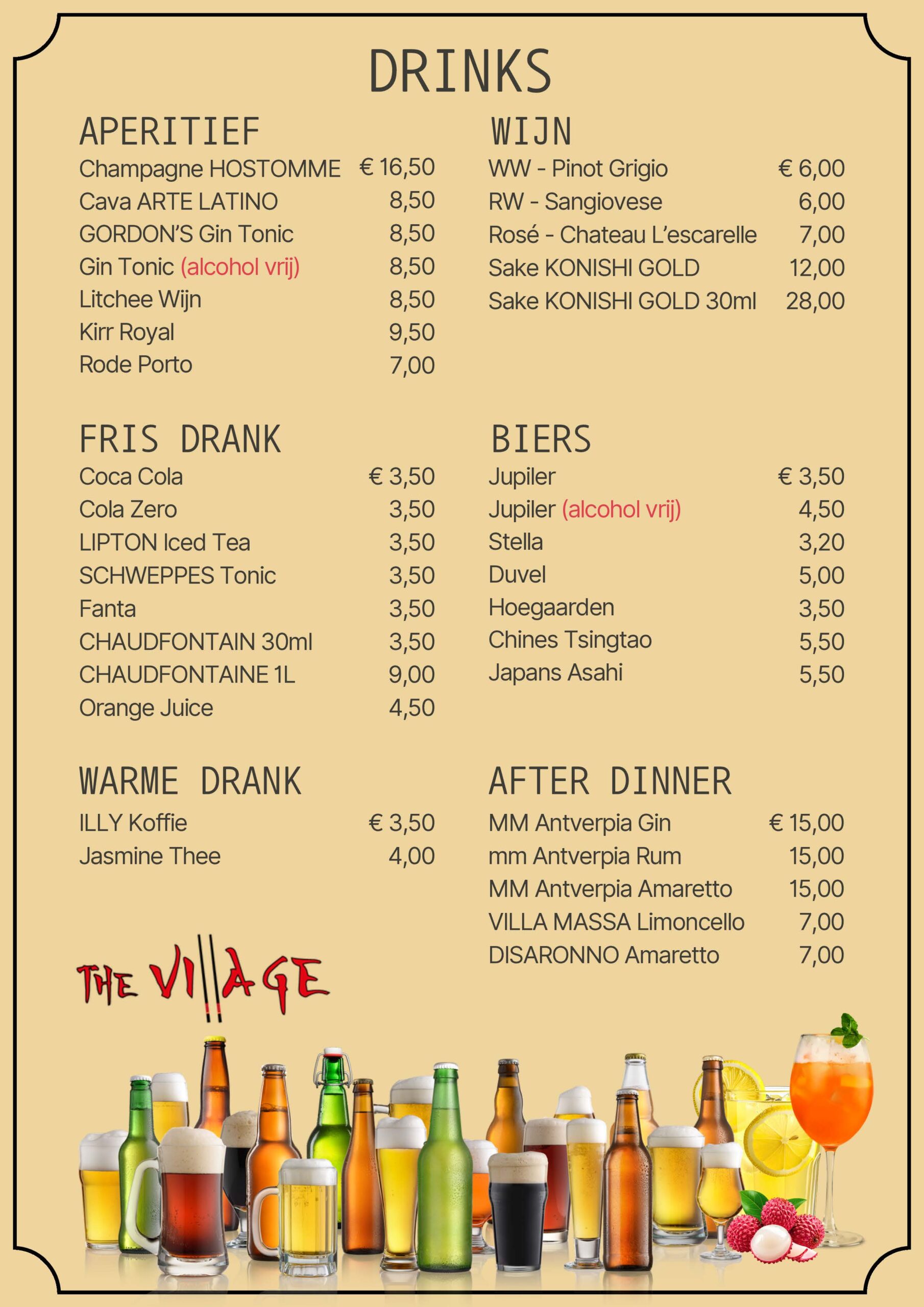 Verder verwelkomen we u graag met een welkomstdrankje : Cava, witte of rode wijn, water, bier of gewoon een fruitsap.